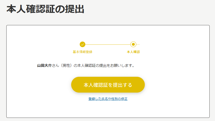 あとは本人確認証(運転免許証など)を提出するのみ。